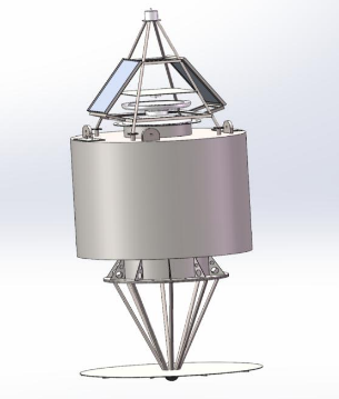 本装置是一种振荡水柱式波浪能驱动的海洋信息实时监测浮标,包含海洋信息监测通讯设备、太阳能发电板、波浪能发电机、混流式双向透平、浮标筒体、中心管、垂荡板等,能够提供高效可靠的监测服务、数据服务和波浪能发电服务,实现海能海用、自给自足。